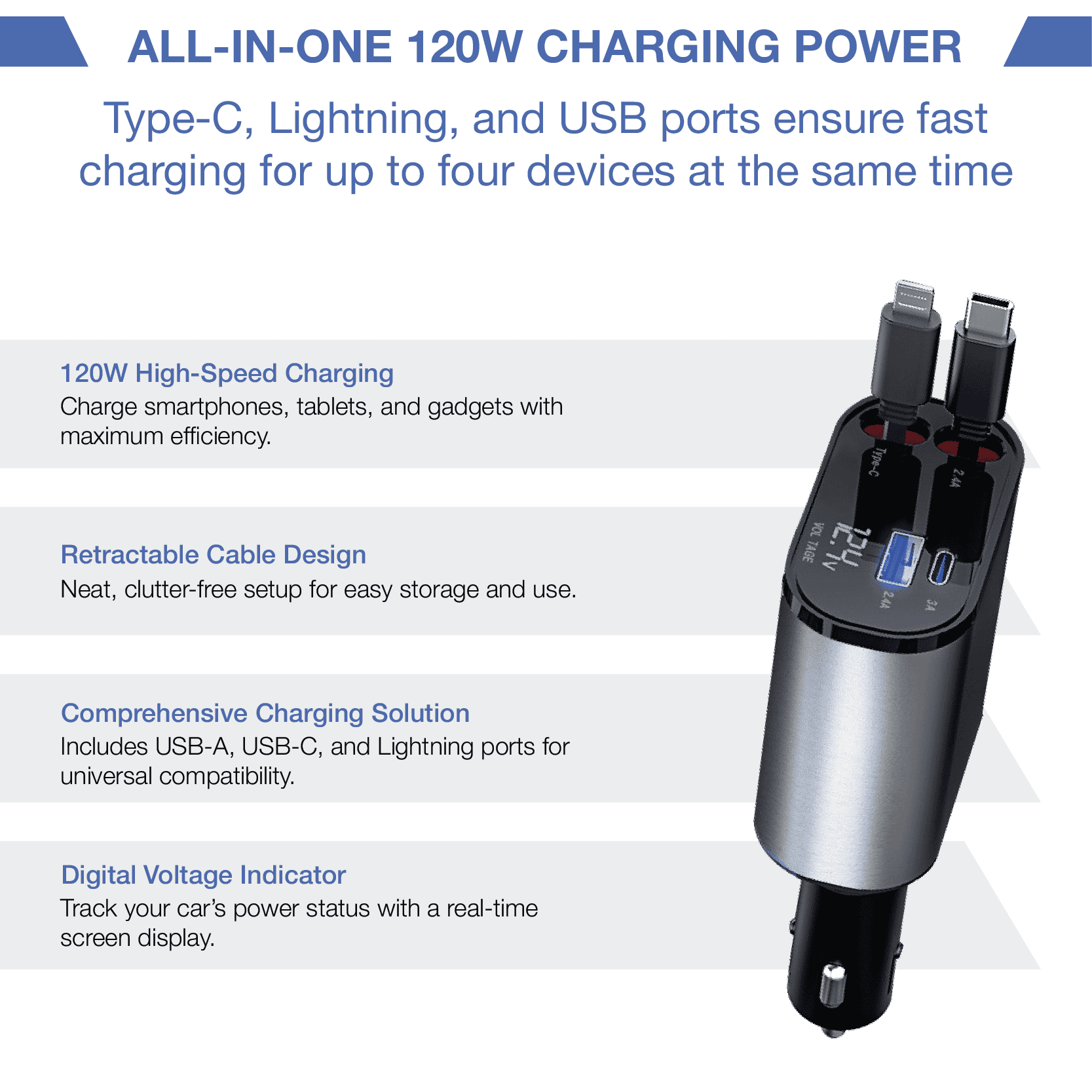 REVO® 4- in - 1 Car Charger Adapter Powerful Fast Charging The Newest 2025 MPP014